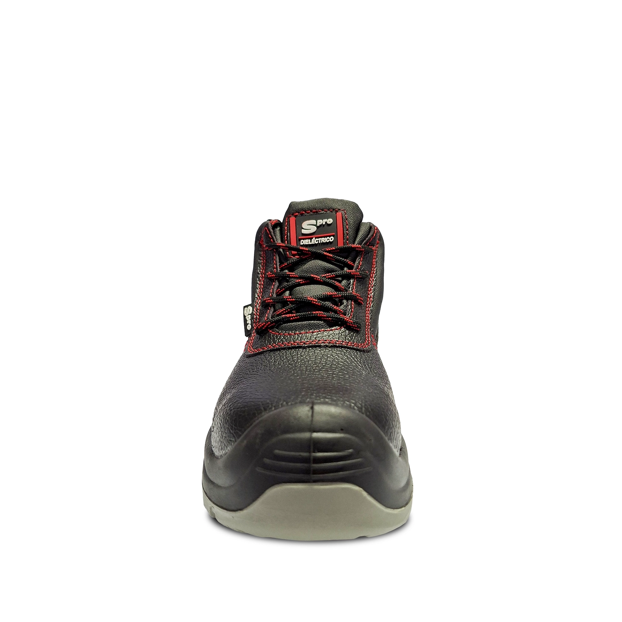 Ideal para emplearse en el sector industrial en general, con exposición a altas tensiones eléctricas, impacto de objetos en puntera, penetración de clavos en plantilla.