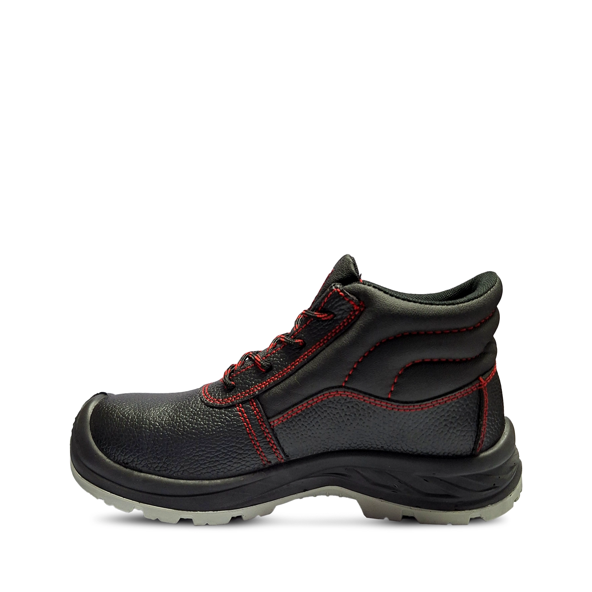 Elaborado de carnaza de cuero, con forro de tela cambrel, acolche ergonómico de espuma y bionapa sintético, suela de poliuretano bidensidad, plantilla removible de microporoso para mayor comodidad, puntera composite, accesorios no metálicos, plantilla no metálica.