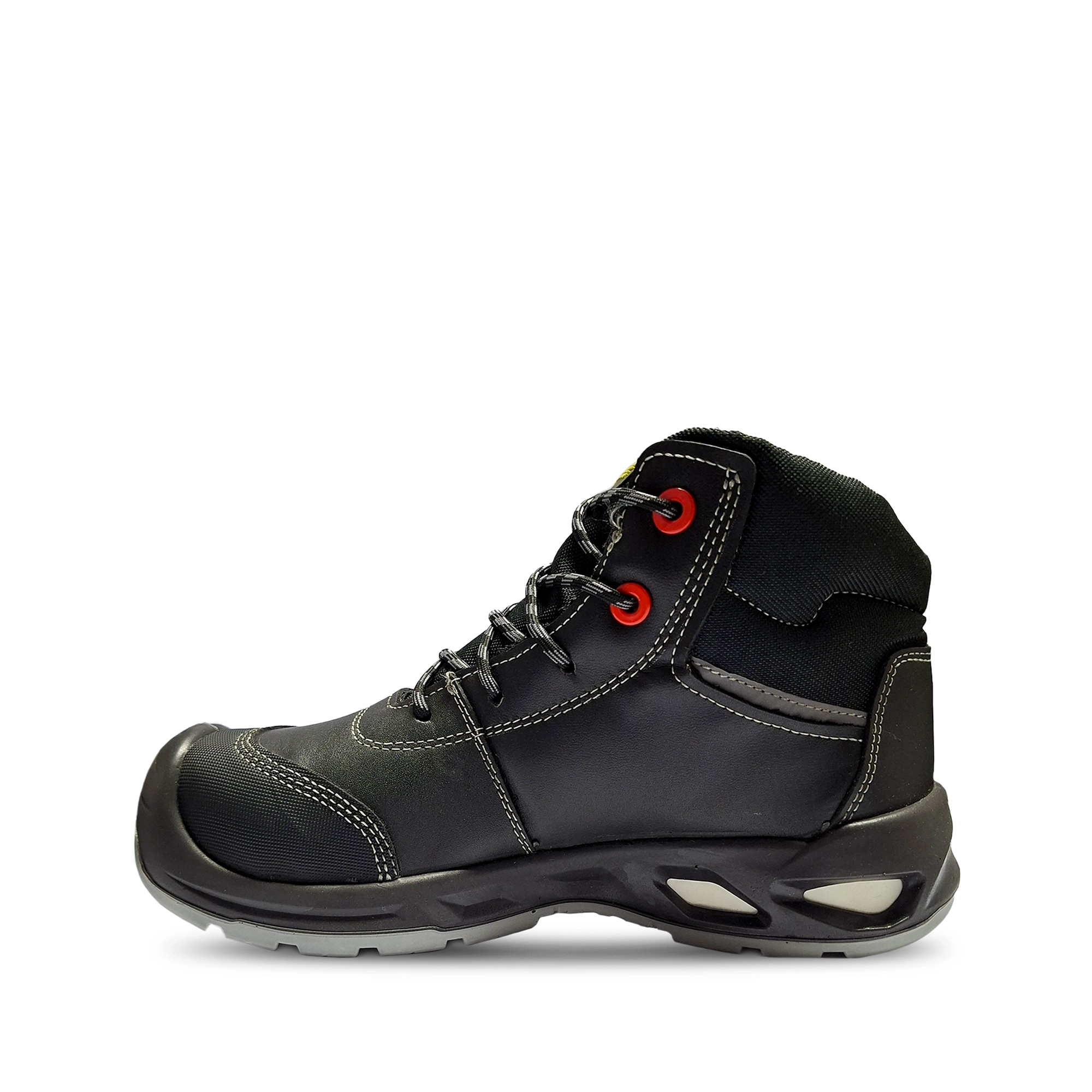 Ideal para el sector industrial, brinda resistencia a aceites e hidrocarburos en la suela, impactos en puntera, perforaciones en la plantilla y protección antiestática.