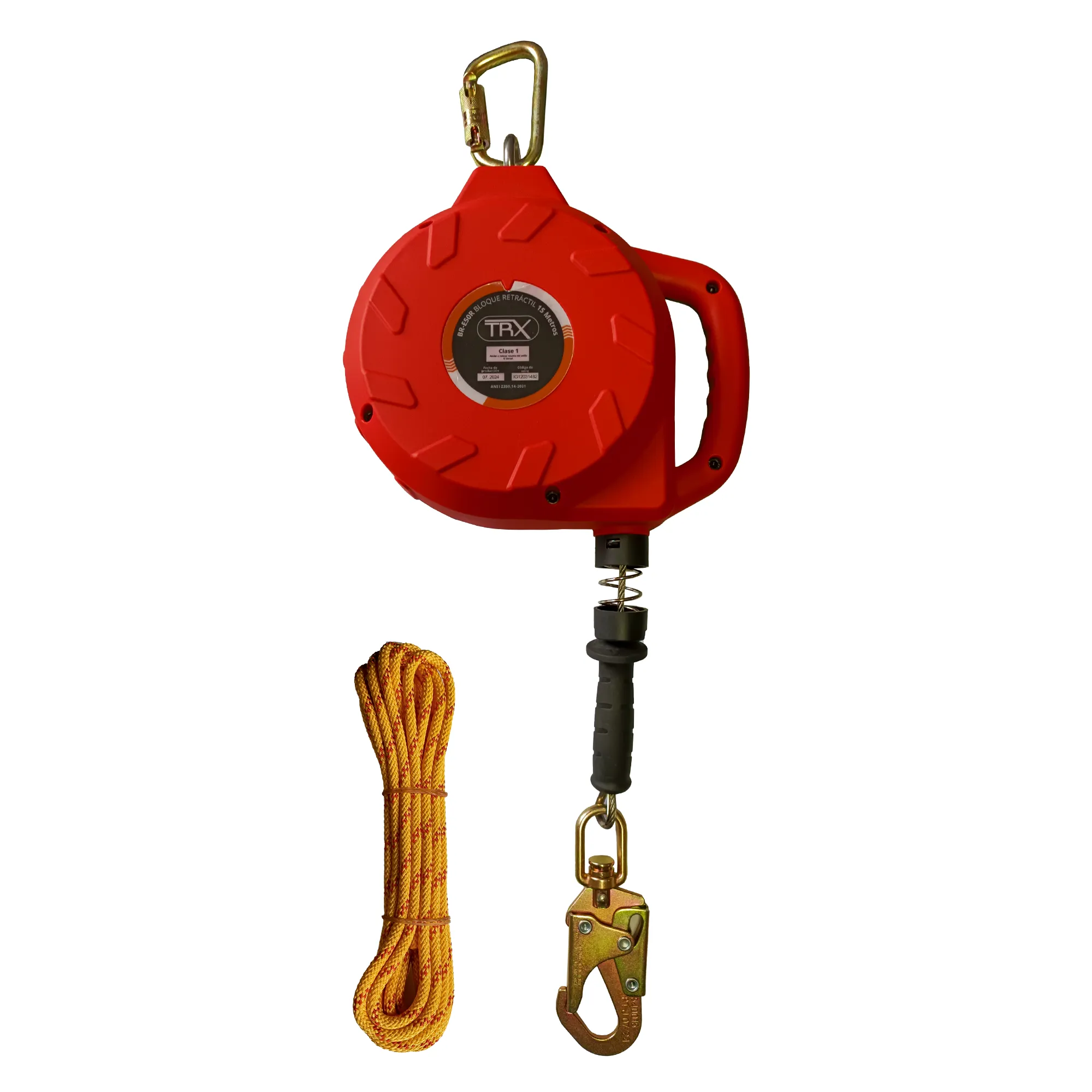 Línea de conexión auto retráctil (BR). Cable de acero inoxidable en 7*19 con 1/5 de diámetro, carcasa de nylon reforzado, gancho de seguridad de acero.