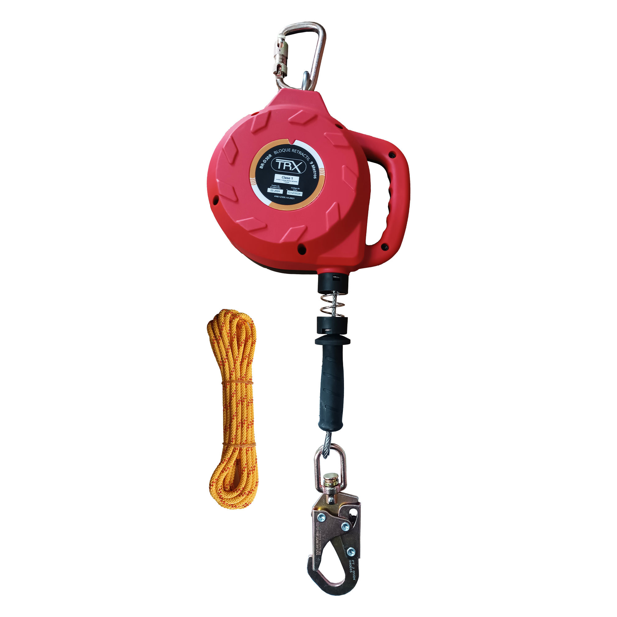 Rango de capacidad de peso en uso incluyendo ropa, herramientas y equipo: 90lbs – 310 lbs. Nuestros bloques retráctiles son clase 1, solo tienen prestación para anclarse arriba del dorsal. Incluye pasador o cuerda de llamado. Incluye handtransport para fácil traslado.