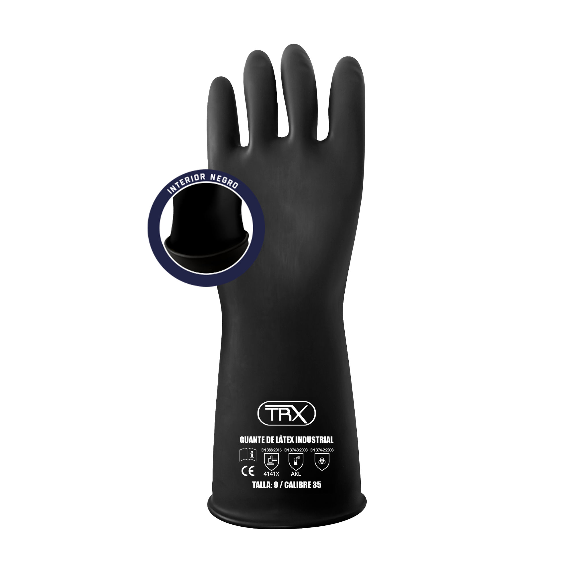 El guante de LÁTEX INDUSTRIAL de la marca TRX es un equipo de protección personal diseñado para trabajo pesado. Fabricado con látex natural de alta calidad, presenta un diseño ergonómico que minimiza la fatiga de las manos durante su uso prolongado. Cuenta con un borde enrollado para evitar la entrada de sustancias al interior del guante y un acabado texturizado para un excelente agarre en condiciones húmedas y secas