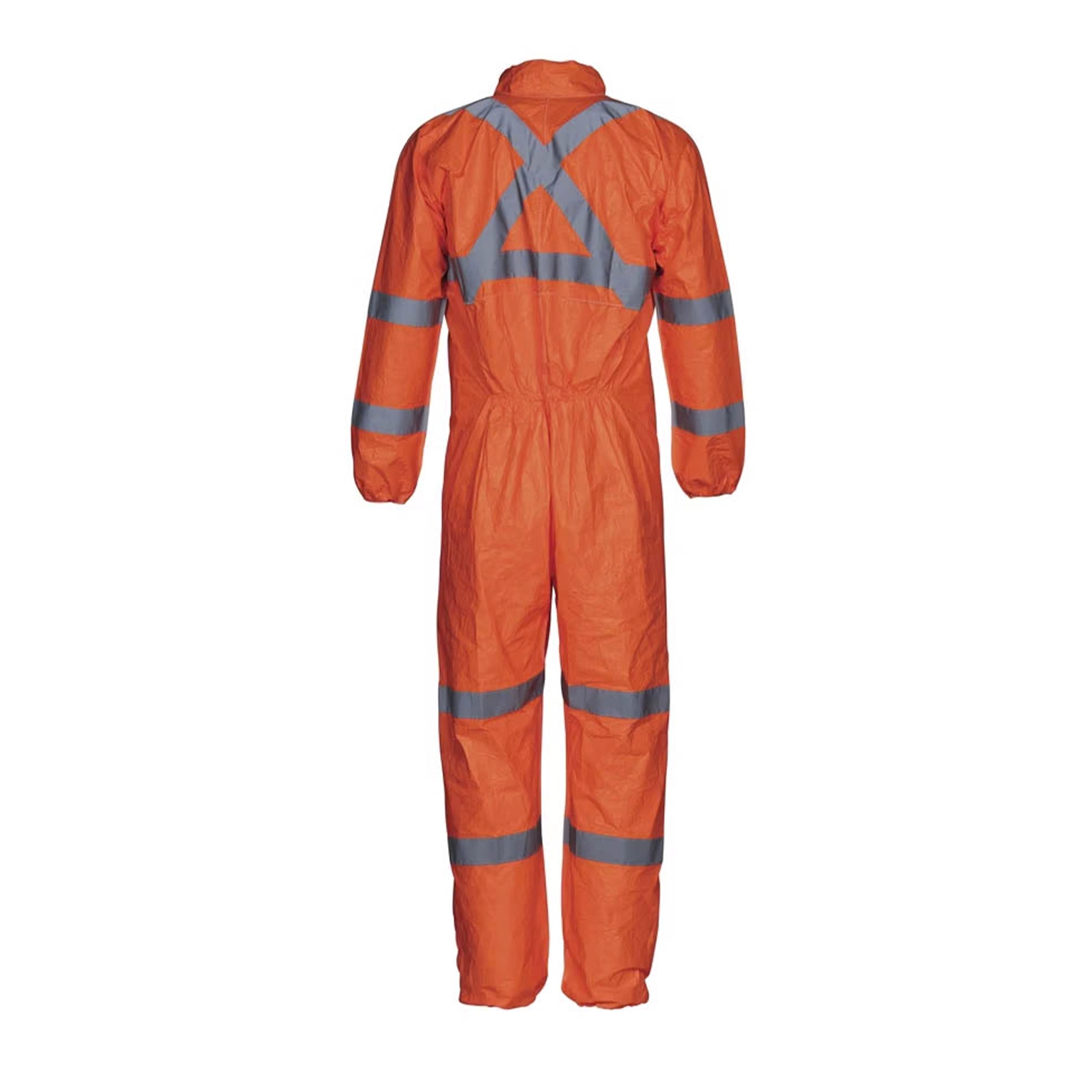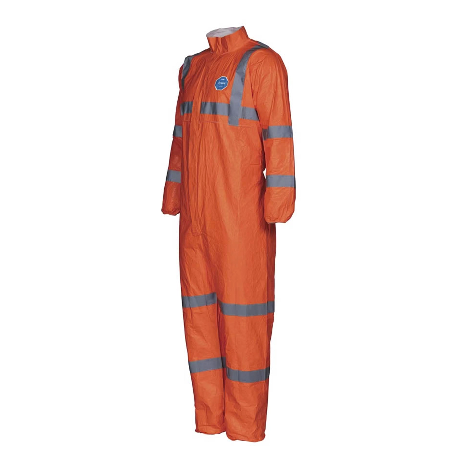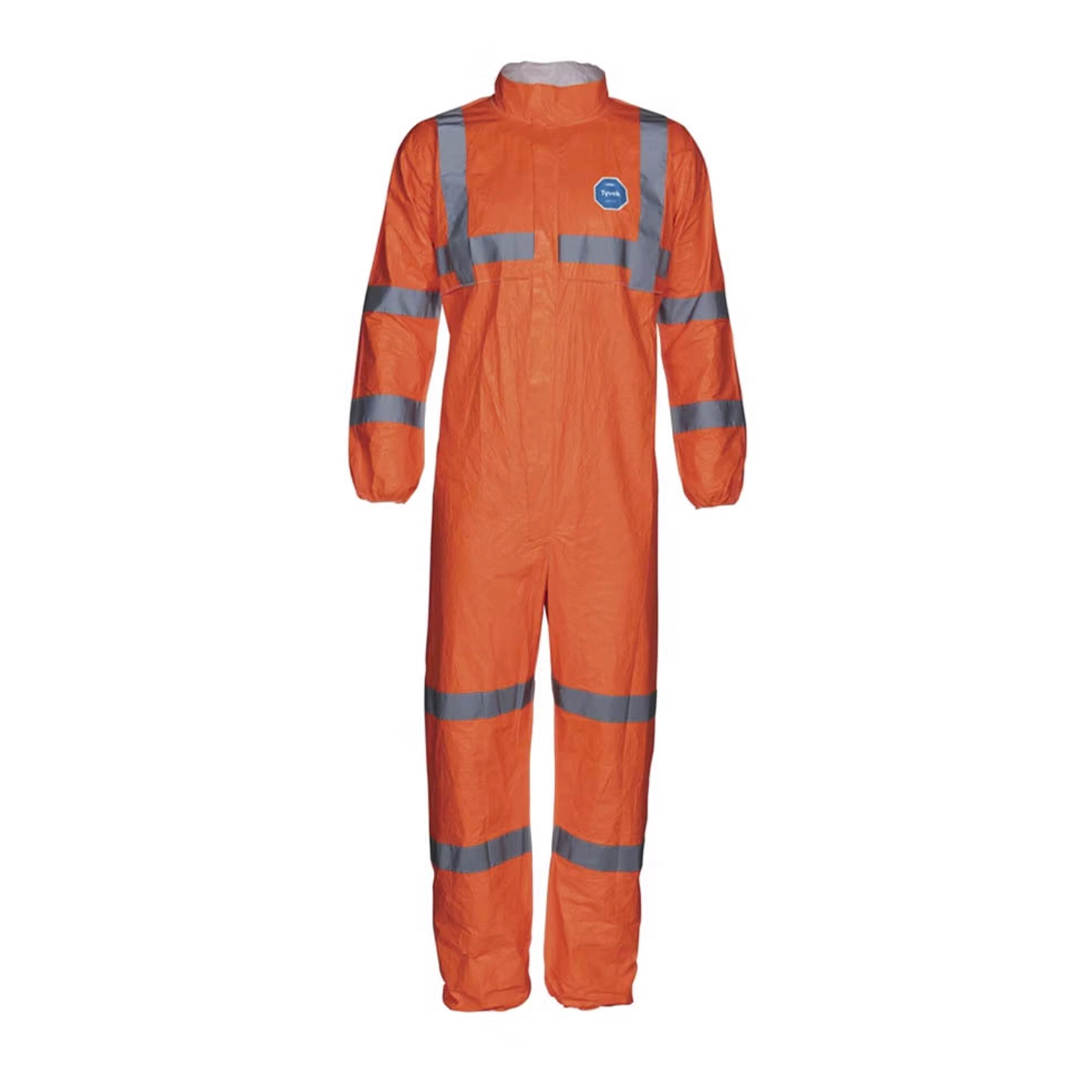 Tyvek® 500 HV, disponible en naranja fluorescente con bandas retrorreflectantes, garantiza visibilidad diurna y nocturna. Disponible en tallas de S,M a 3X, es robusto pero ligero, con cuello mao, puños, tobillos y cintura elásticos, y una amplia zona de entrepierna para mayor comodidad y movilidad.