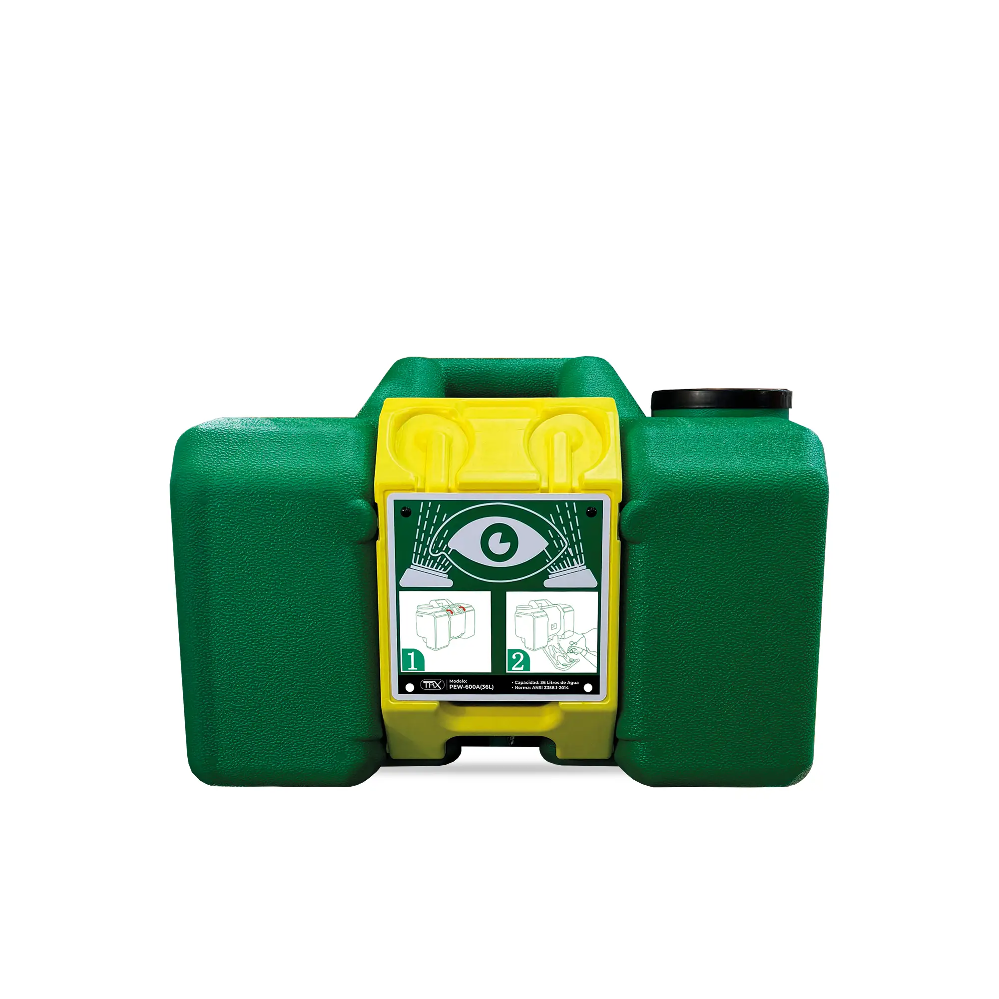 La ESTACIÓN PORTÁTIL TRX LAVAOJOS 36L es un equipo de emergencia diseñado para proporcionar una solución rápida y eficaz ante la exposición de los ojos a sustancias peligrosas. Con una capacidad de 36 litros de agua potable, está fabricado en resistente plástico ABS y cuenta con tapas protectoras que evitan la entrada de residuos, insectos o químicos.